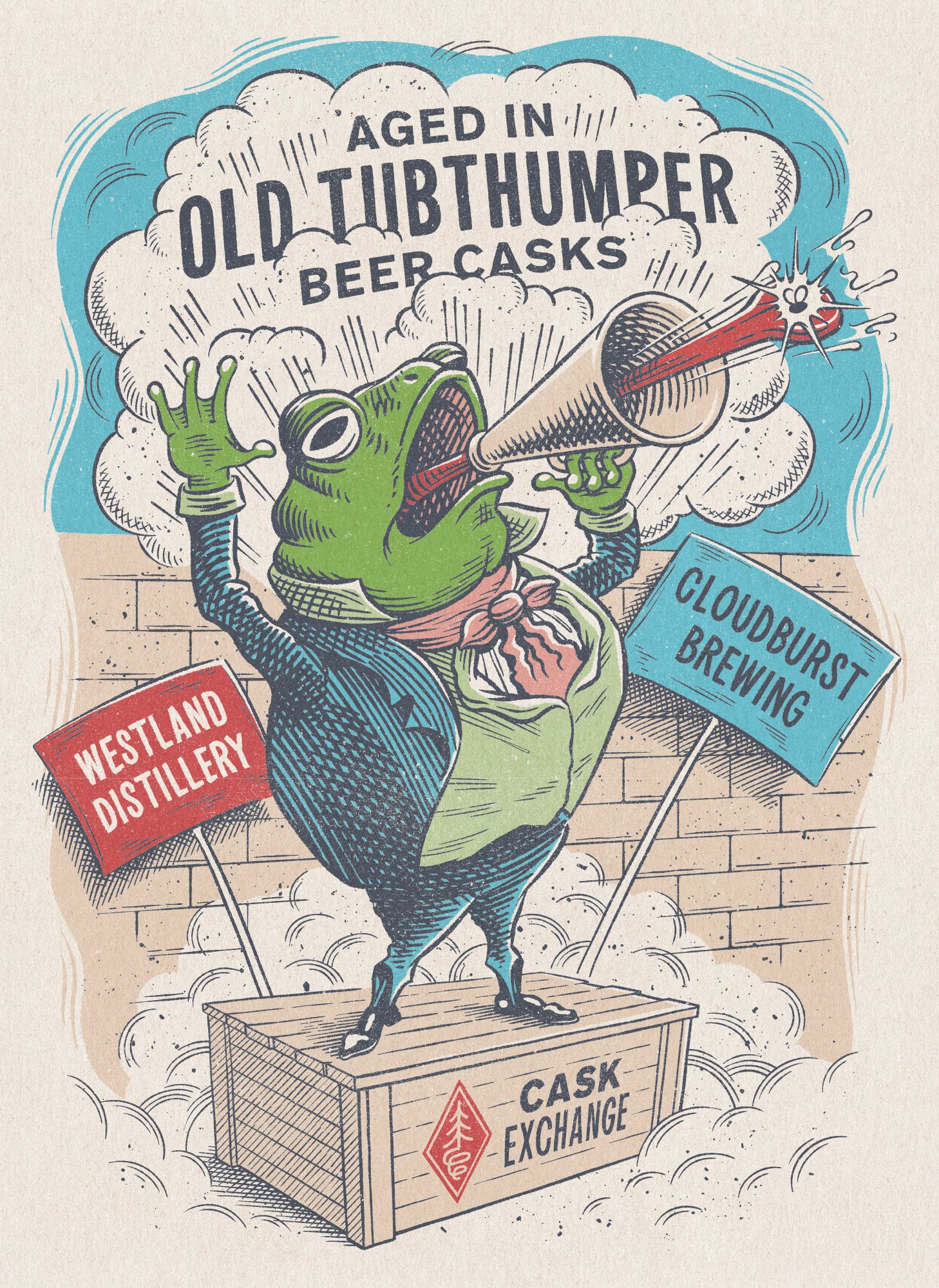 As an extension of Westland’s exploration of Pacific Northwest terroir, their Cask Exchange program focuses on cultural terroir through the release of whiskeys finished in casks exchanged with local breweries. Each release is a single cask yielding approximately 275 bottles. For the packaging, we developed a two-label system: one label ties directly to the Westland brand and meets all legal content requirements, while the second label is available for expressive artwork representative of and custom to the release. The expressive side of the package presents a creative opportunity to embody the illustrative qualities of craft beer packaging and allows for each release to have its own visual interpretation. The artwork for each release is then broken out into subsequent pieces for marketing and promotional purposes. As a collection, the series represents the breadth of variation in the Pacific Northwest craft brewing scene and the vast possibilities of flavor within American Single Malt Whiskey.
