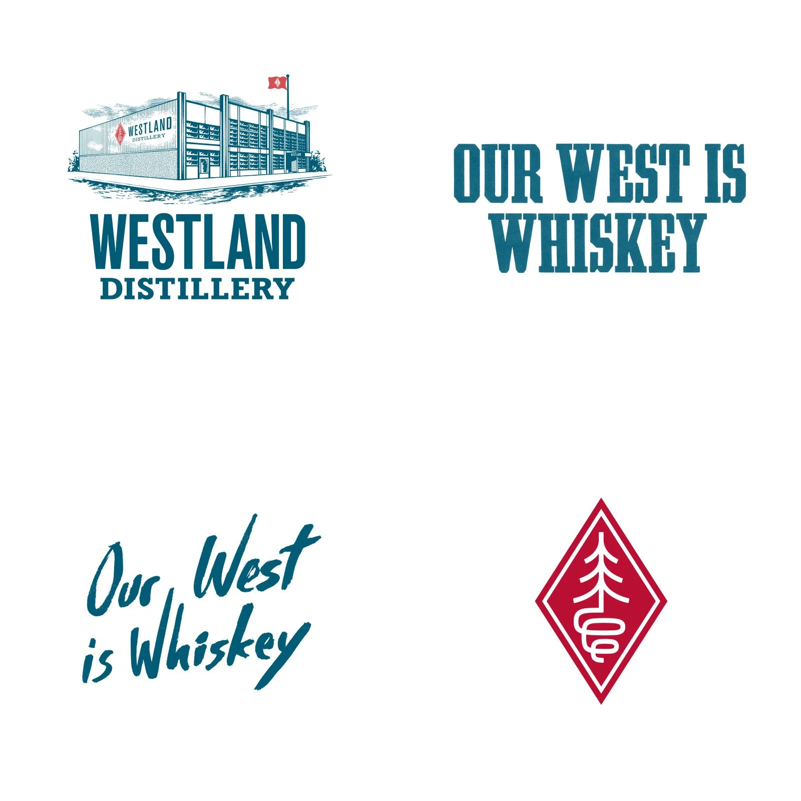 The Westland logo, the “Treecoil” is an amalgamation of several story telling elements and aesthetic references. The tree represents the founding family’s historical ties to the logging industry, but also the growth of a new endeavor for the future. The roots of the tree are the condensing coils of a still. The style in which these elements are rendered in a way in which the mark can be made by the impact of a single tool.